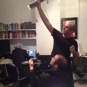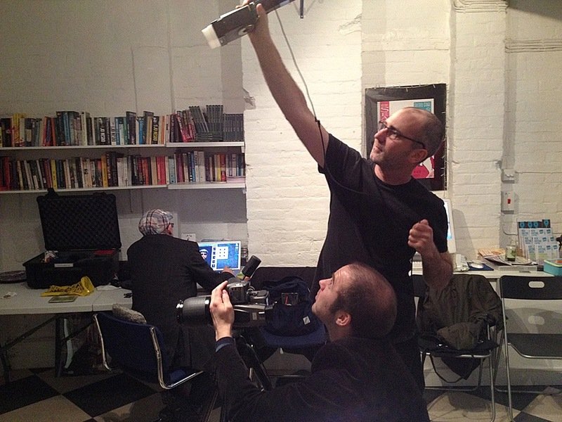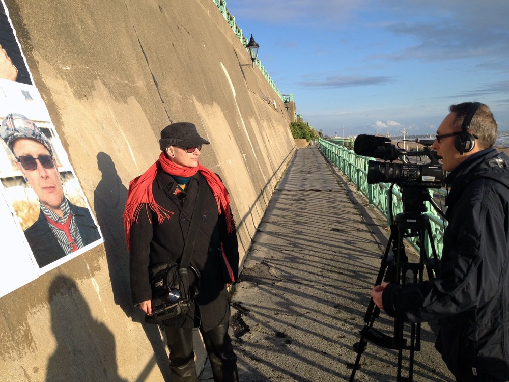 13. This image depicts Luc Raesmith being interviewed by ITV News for th Not Going Shopping Exhibition in Brighton.