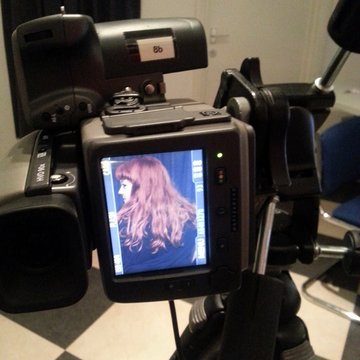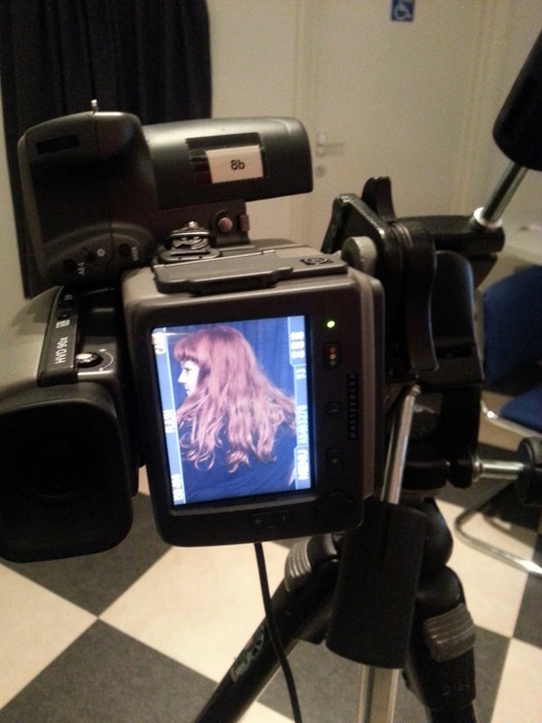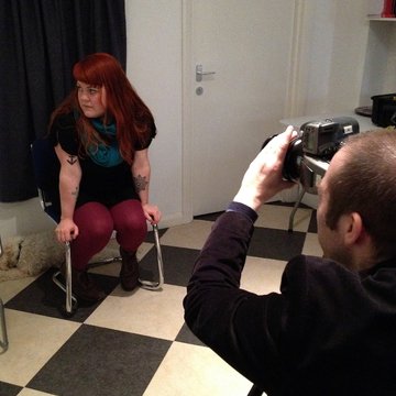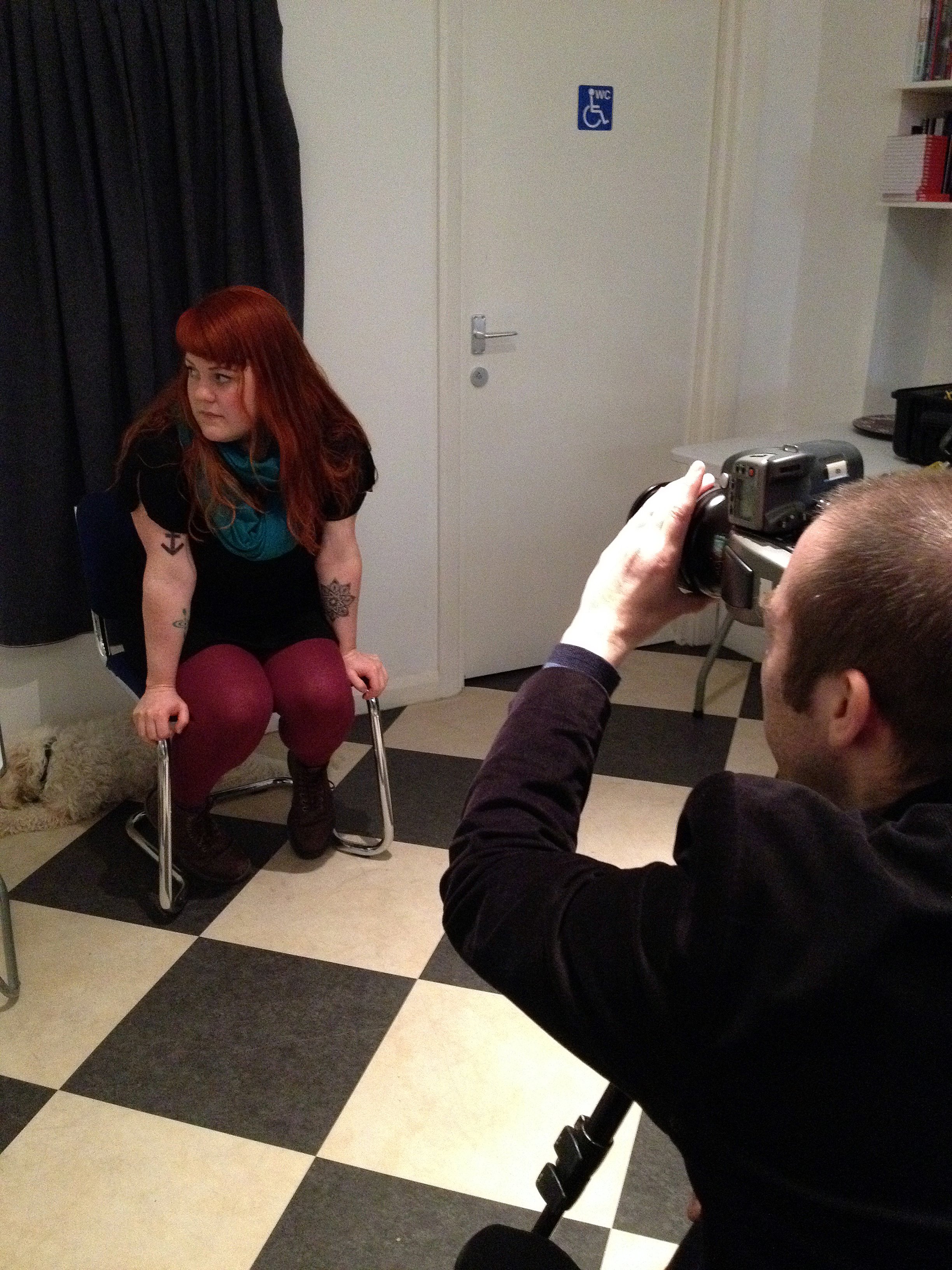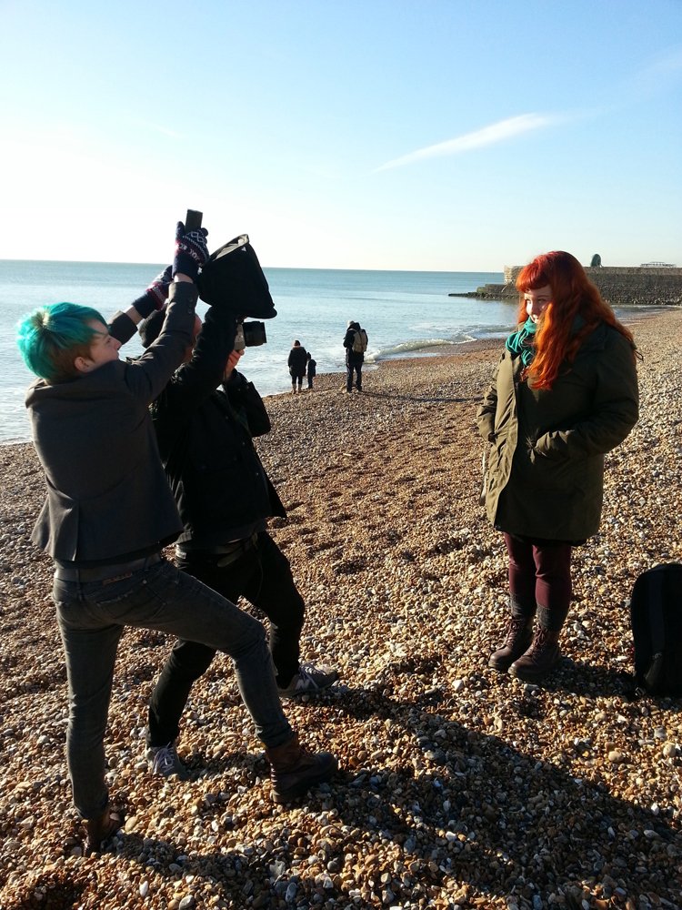 6. This image portrays Fox Fisher in front of the camera awaiting her picture to be taken. Edward Whelan is behind the camera whilst Matt Robinson adjusts the lighting and Harry Pygar observes.