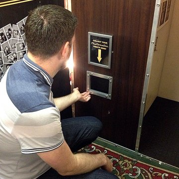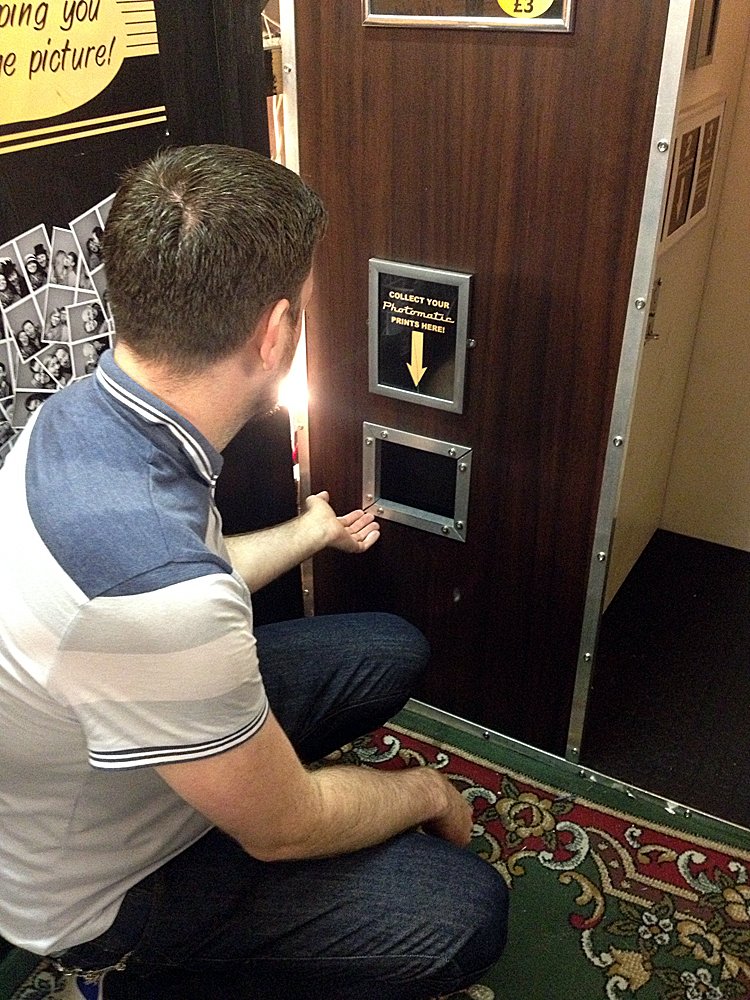 3. This image depicts one of the participants waiting to collect their photos from a photobooth in the North Laines.