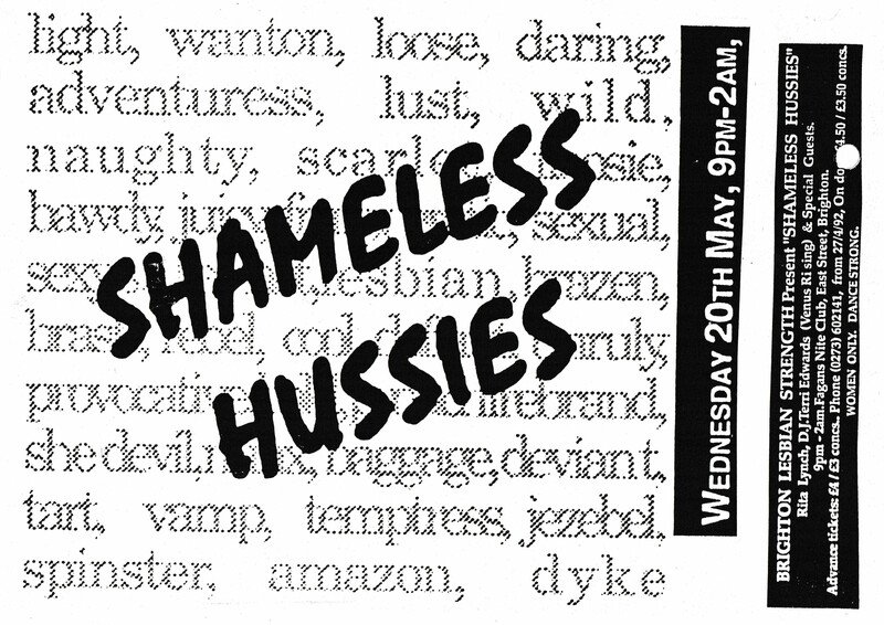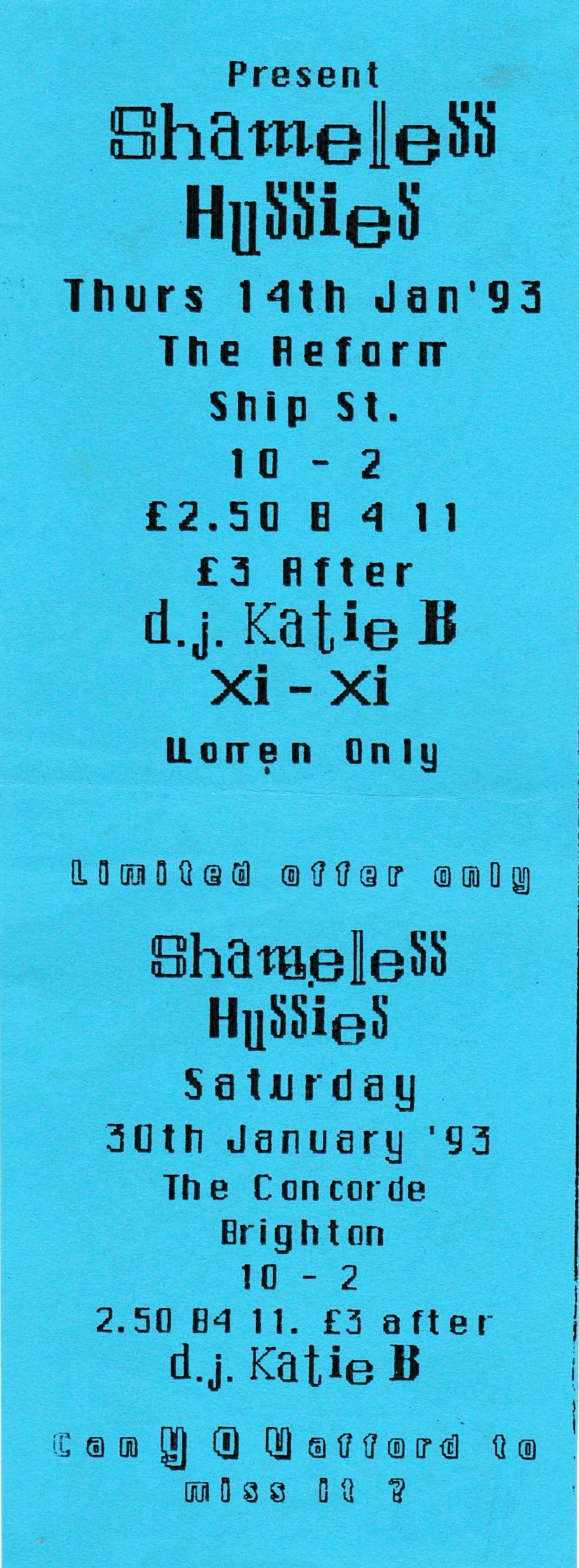 Shameless Hussies women-only lesbian Brighton club night 1992 / 1993
