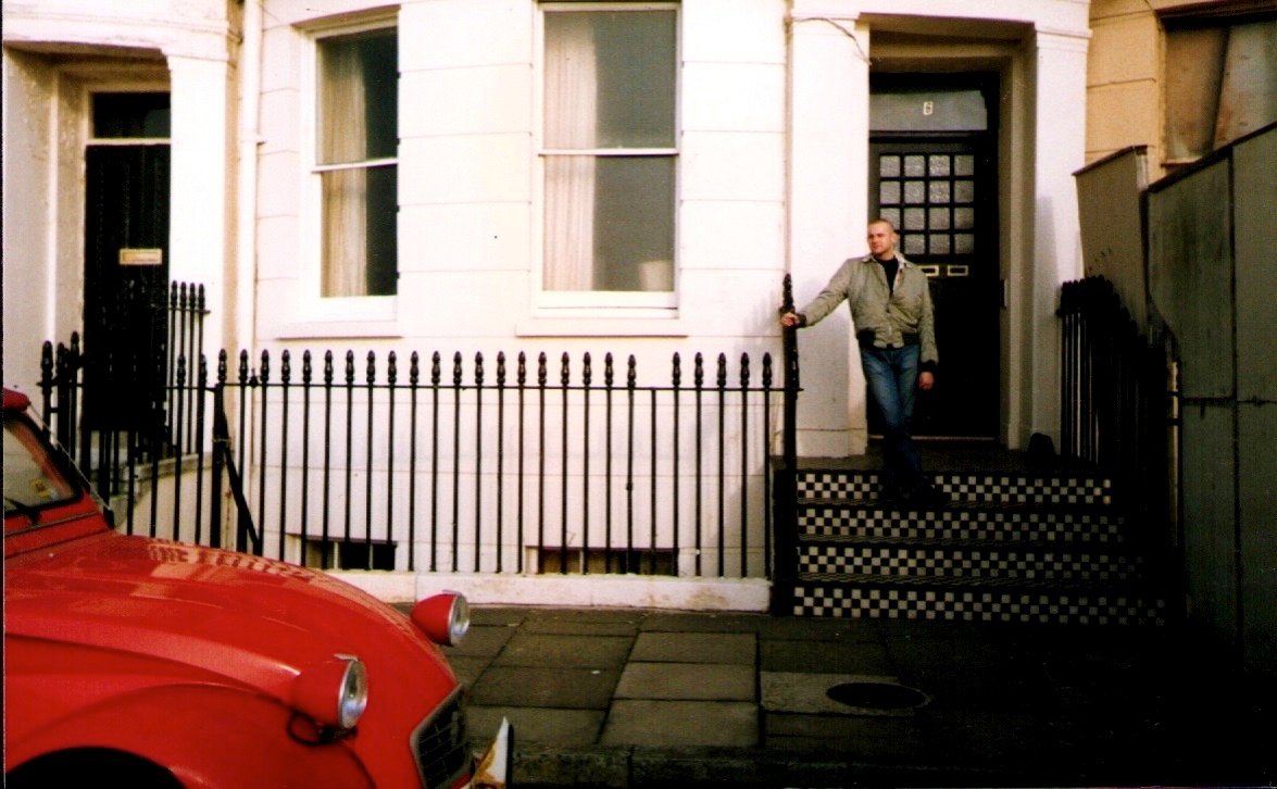 Photo of me on the steps of No.6 Percival Terrace - where I lived with my second Brighton boyfriend. Note that No.7 is under construction. In fact, 7-12 had collapsed some years before as a result of a sink-hole underneath the building. Rebuilt in the same late Georgian style in the noughties, the row is complete once again.