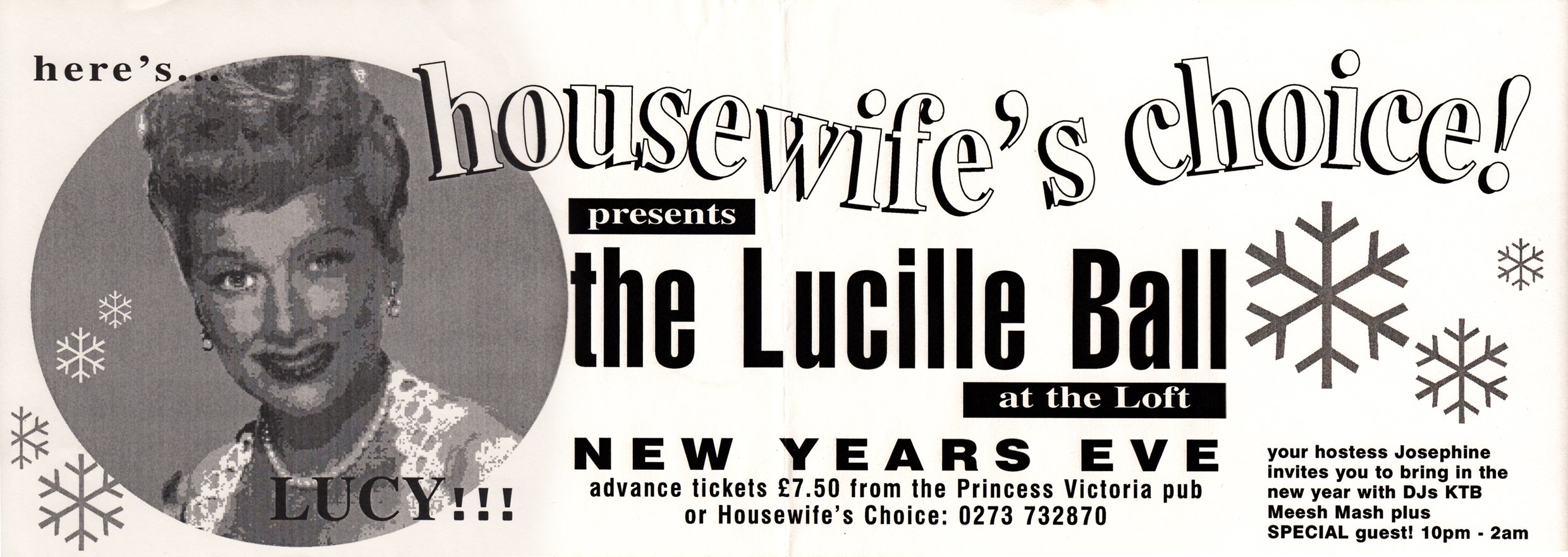 Housewife's Choice NYE flyer 1994 - The Lucille Ball