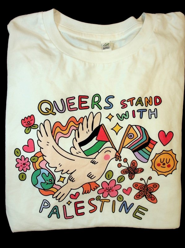 T-shirt about Queers standing with Palestine