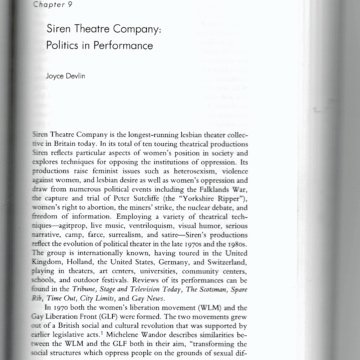 2. The chapter was entitled Siren Theatre Company: Politics in Performance. It referred to Siren as having been the longest-running lesbian theatre collective in Britain at the time.