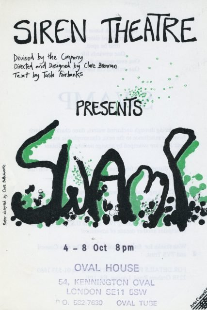 This shows the poster for Siren’s play ‘Swamp’ for the performance at the Oval House Theatre in London. The play was directed by Clare Brennan. As well as touring the play in the UK, it was also performed