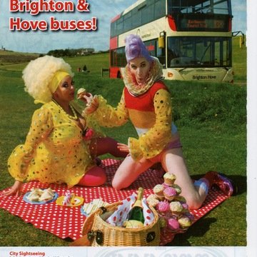 Brighton & Hove bus adverts featuring Boogaloo Stu and Dolly Rocket.