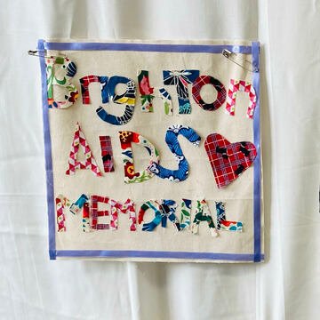 Arthur Law’s Star Quilt is seen here on the start of the Brighton Lesbian and Gay Pride march in 1992. Arthur was one of the Pink Parasol committee responsible for organising the event. As well as being a fearless and committed activist, Arthur was a brilliant designer and a gifted sewer. He also made the Fighting AIDS Brighton banner for Our House Body Positive, which can be seen here displayed on Queens Park railings at the Pink Picnic in 1993. Arthur died on the 17 May 2018 Thanks to Avee Isofa Holmes & www.wildbloodandqueenie.com for use of the images