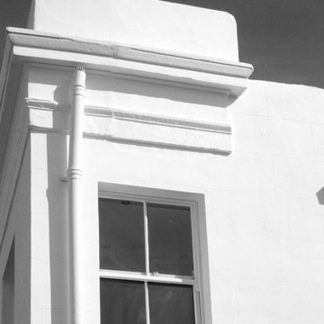 1. This photo captures the top window of a house.