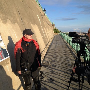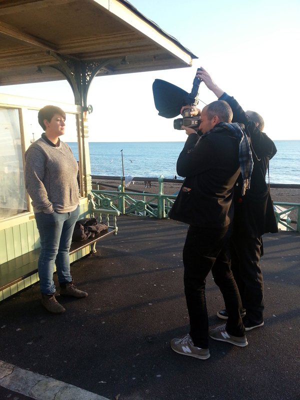 13. This image depicts Luc Raesmith being interviewed by ITV News for th Not Going Shopping Exhibition in Brighton.