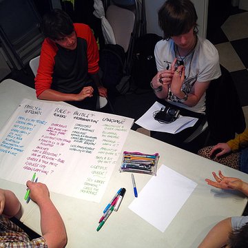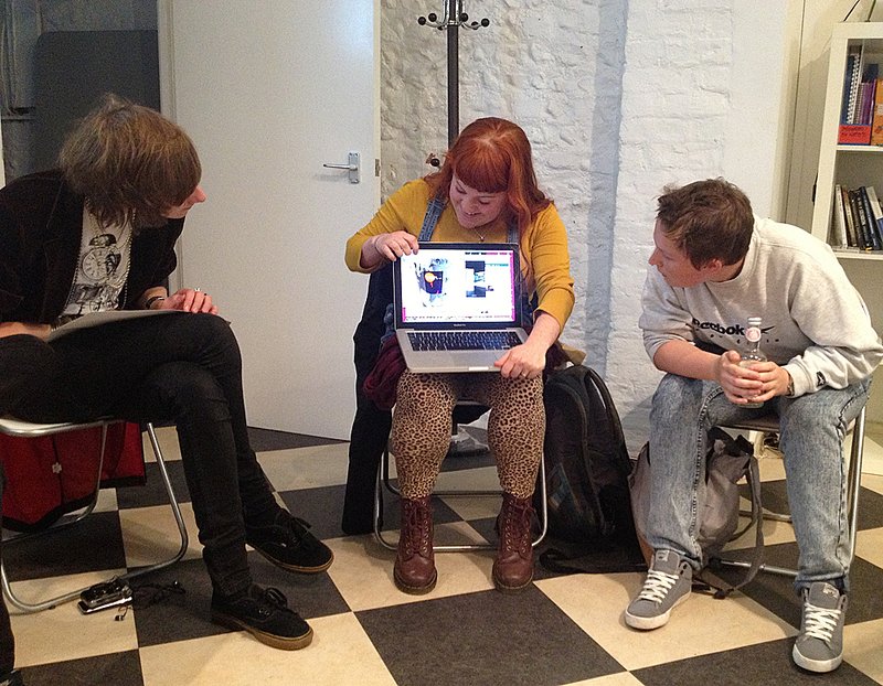 2. This photograph depicts the group discussing different themes that they wanted to explore through the exhibition.