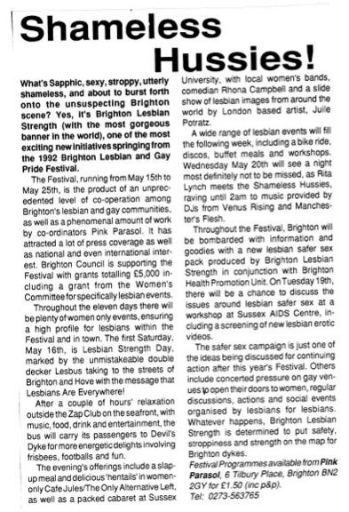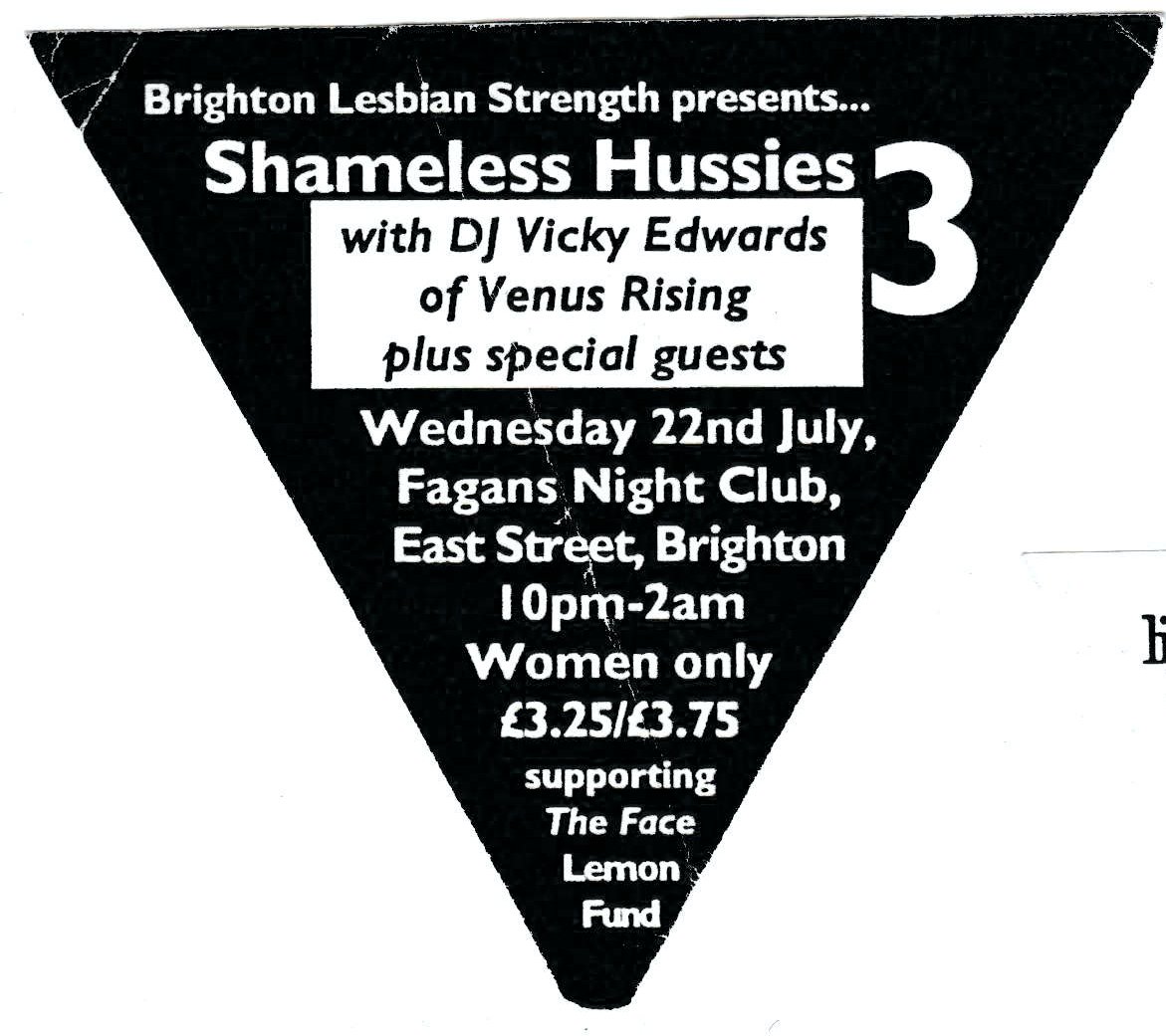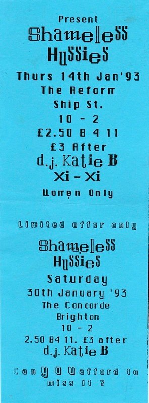 Shameless Hussies women-only lesbian Brighton club night 1992 / 1993