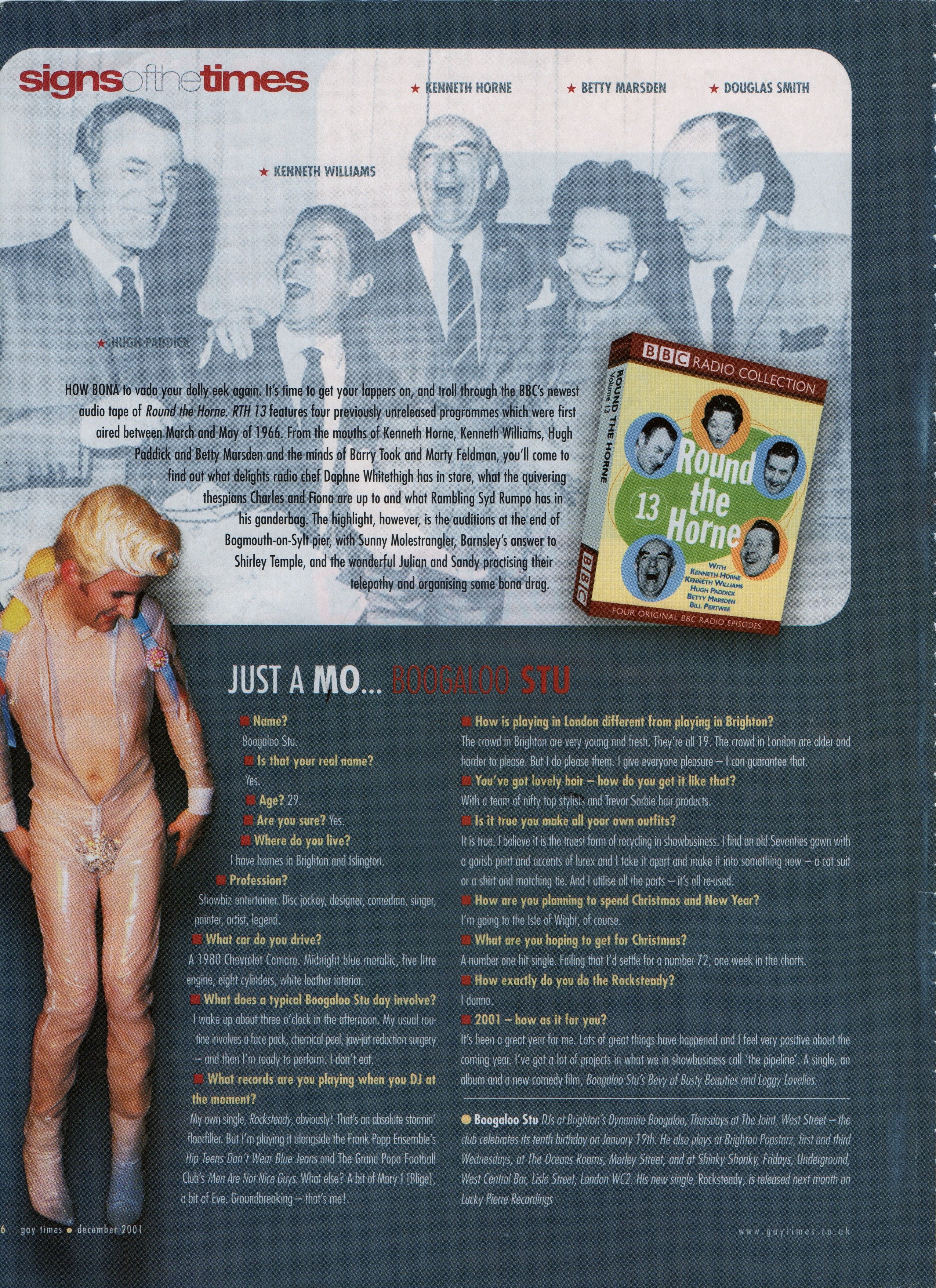 Gay Times Dec 2001 Interview with Boogaloo Stu.