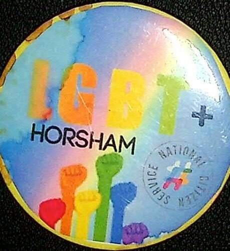 A badge handed out at the first Horsham Pride event in 2017, run by students involved in the National Citizenship Service. The pride event ended up being about 20 teenagers sitting in a park wearing flags.