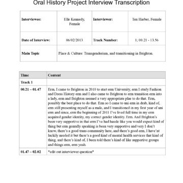 Snippet from an interview with Elle Kennedy. The full interview was part of Queer in Brighton oral history project. A collection of over 100 recordings, documenting queer life in Brighton.