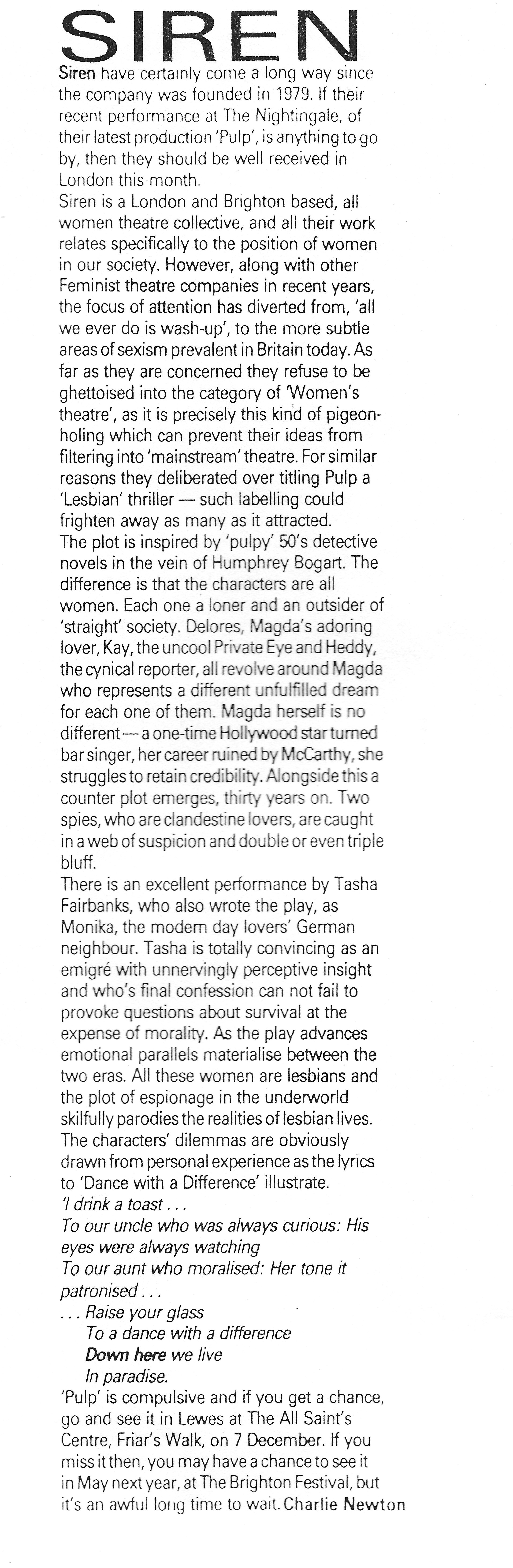 Brighton Review of Siren's 'Pulp'