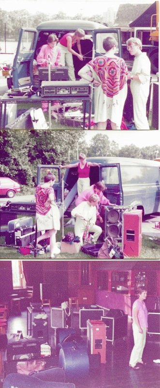 This shows Siren loading up the van after a performance of ‘Mama’s Gone a-Hunting’, still wearing their costumes. Often, after a performance, the get-out had to be very fast, with no time to change. This was an outdoors, daytime performance.