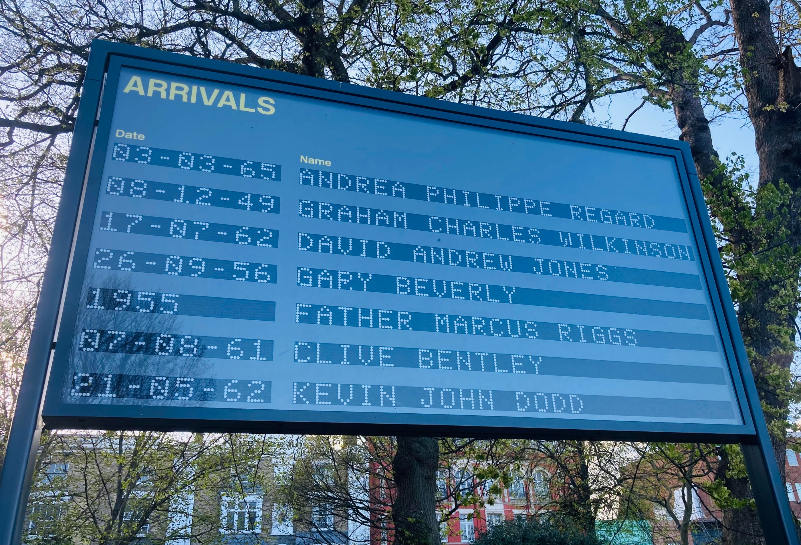 Arrivals + Departures invites the public to share the names of those who have arrived and departed on live boards, to acknowledge, celebrate and commemorate.